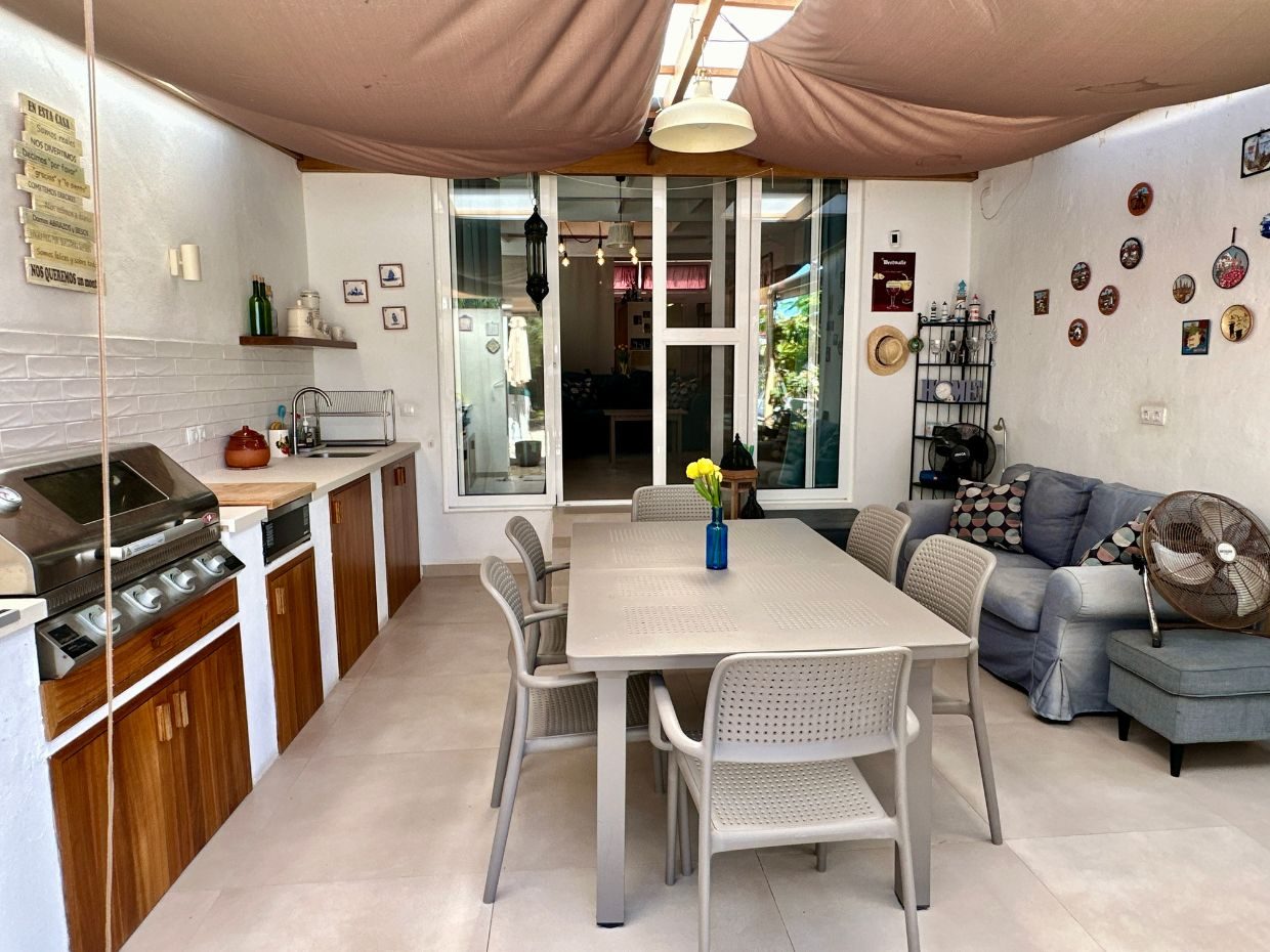 La propiedad cuenta con tres dormitorios y tres baños, además de un estudio independiente de 40 m² con baño, perfecto para invitados, despacho, zona de ocio o una opción adicional de rentabilidad. La cocina principal está completamente equipada y se complementa con una cocina exterior de 20 m², ideal para veladas y eventos al aire libre.
