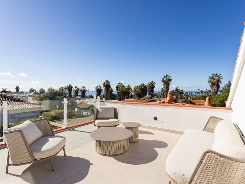 Esta propiedad cuenta con 5 dormitorios dobles con baño en suite, tres cocinas de última generación, un salón principal con zona de comedor y múltiples terrazas para disfrutar del aire libre. Desde cada rincón, las vistas al mar, al campo de golf y a las montañas son simplemente espectaculares.